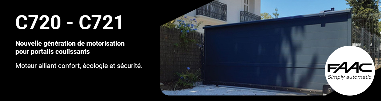 FAAC vous propose les moteurs C720 et C721 en kit 24V. Cette motorisation pour portails coulissants est faite avec des moteurs à principe de réduction à axes mobiles. Leur robustesse, leur rapidité d’ouverture et leur design attrayant leurs permets de répondre à vos besoins.