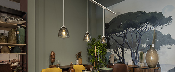 • Projecteurs, suspensions et spots orientables à positionner librement sur le rail