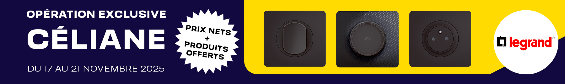 Opération Valable du 17 au 21 novembre 2025. Dans la limite de 10 lots par raison sociale. Offre réservée aux clients en compte Artisans et Installateurs (hors Grands Comptes et Clients à marchés à Prix Nets). Achats aux conditions habituelles hors affaires spéciales négociées, non cumulable avec tout autre promotion ou animation commerciale ponctuelle octroyant des prix exceptionnels ou des produits offerts. Dans la limite des stocks disponibles.