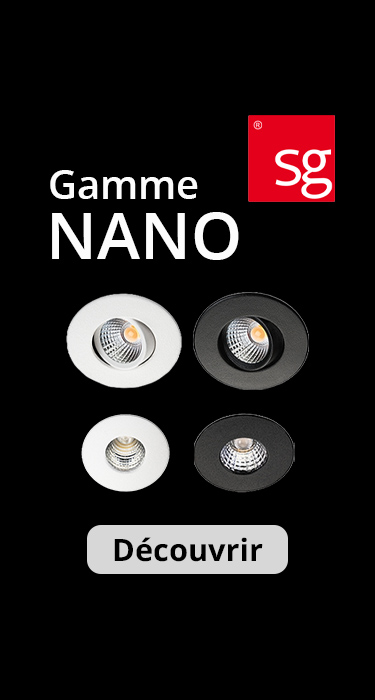 Nano downlight ultra compact diamètre 33mm noir LED 1W 3000K 90 lumens IRC >90 SDCM 3 durée de vie : L70/B50>50 000 heures faisceau de 36° aluminium et PC classe III IP44 branchement en série 350mA driver non fourni